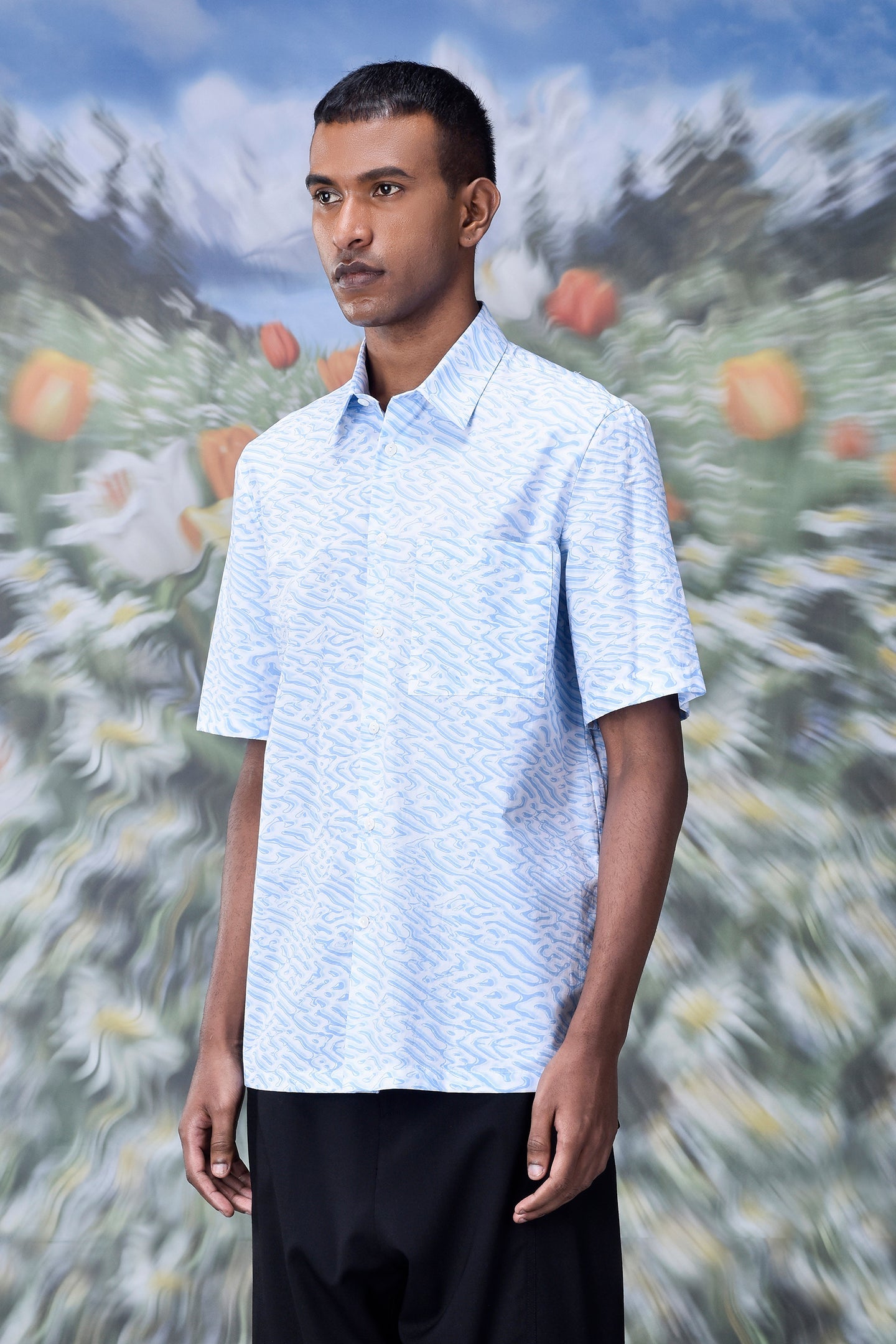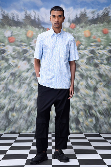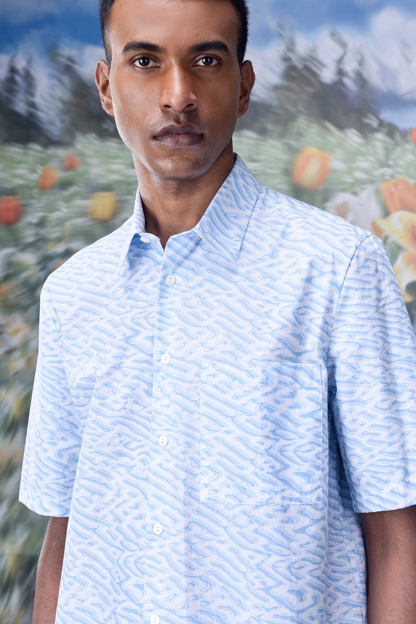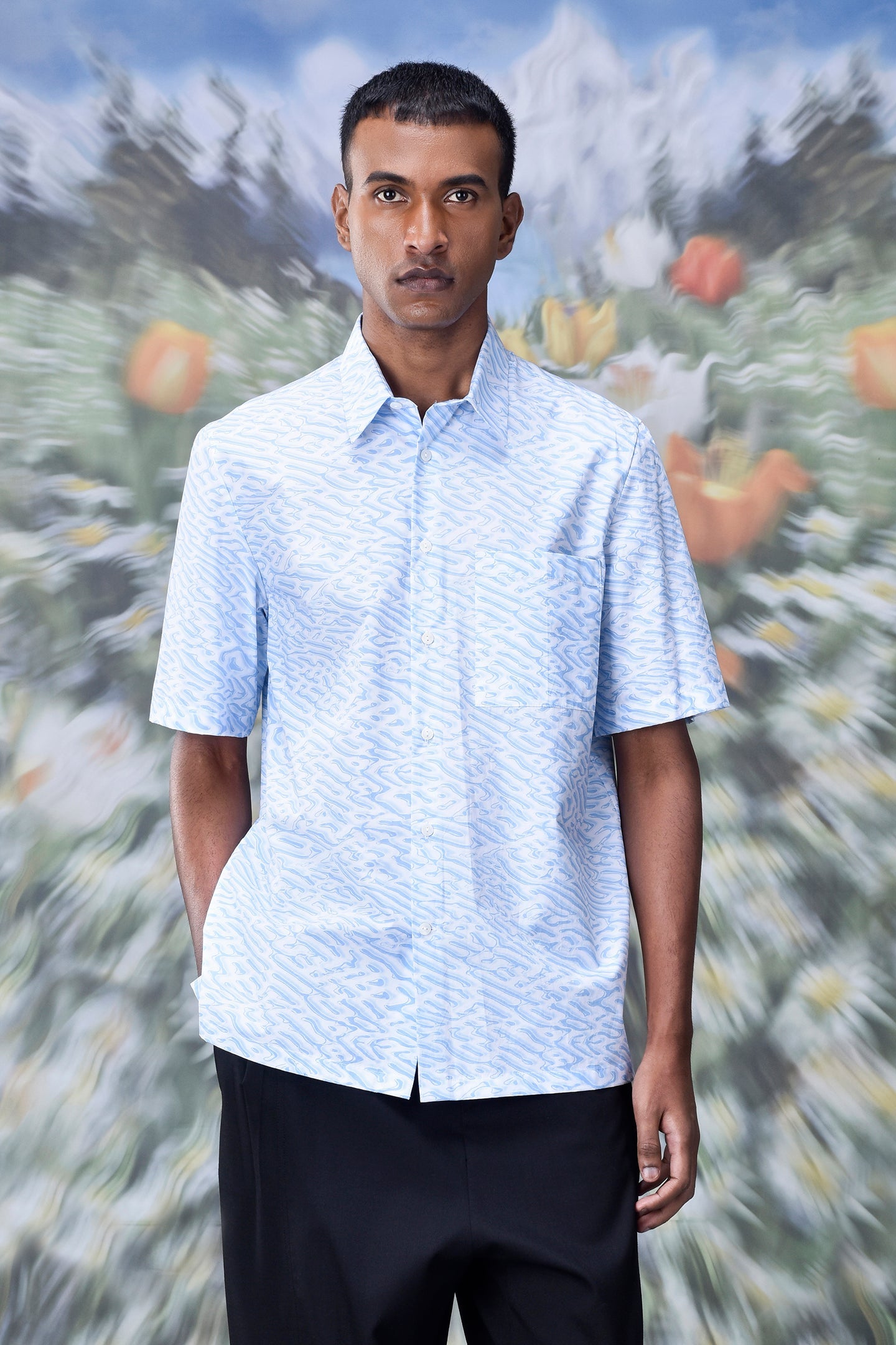 Presenting our Labyrinth Cotton Shirt in Light Blue inspired by the winding nature to dreams- The Labyrinth print, evokes that sentiment of surreal intrigue.