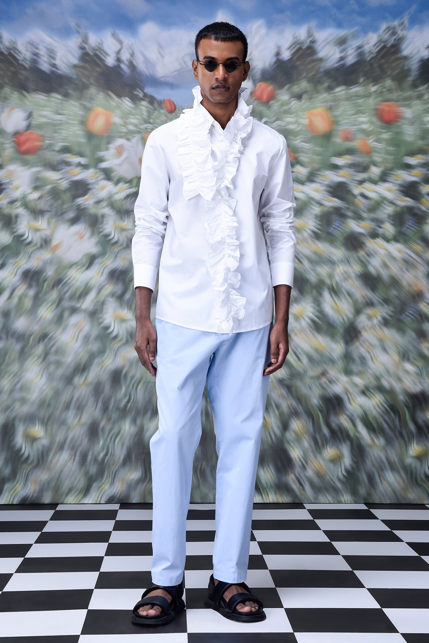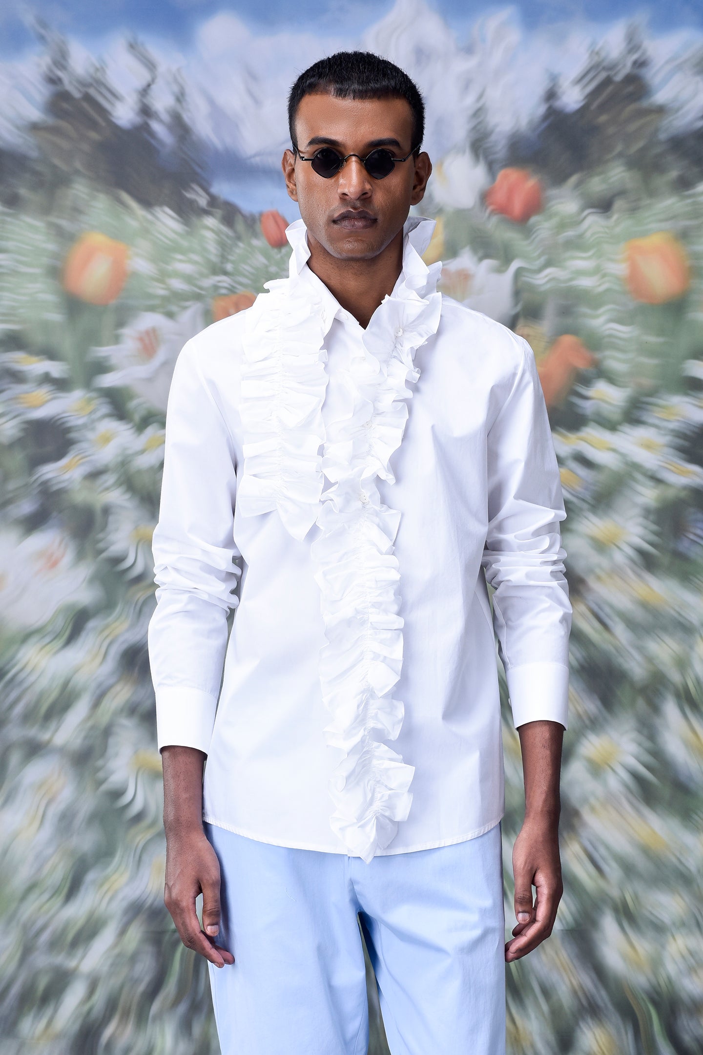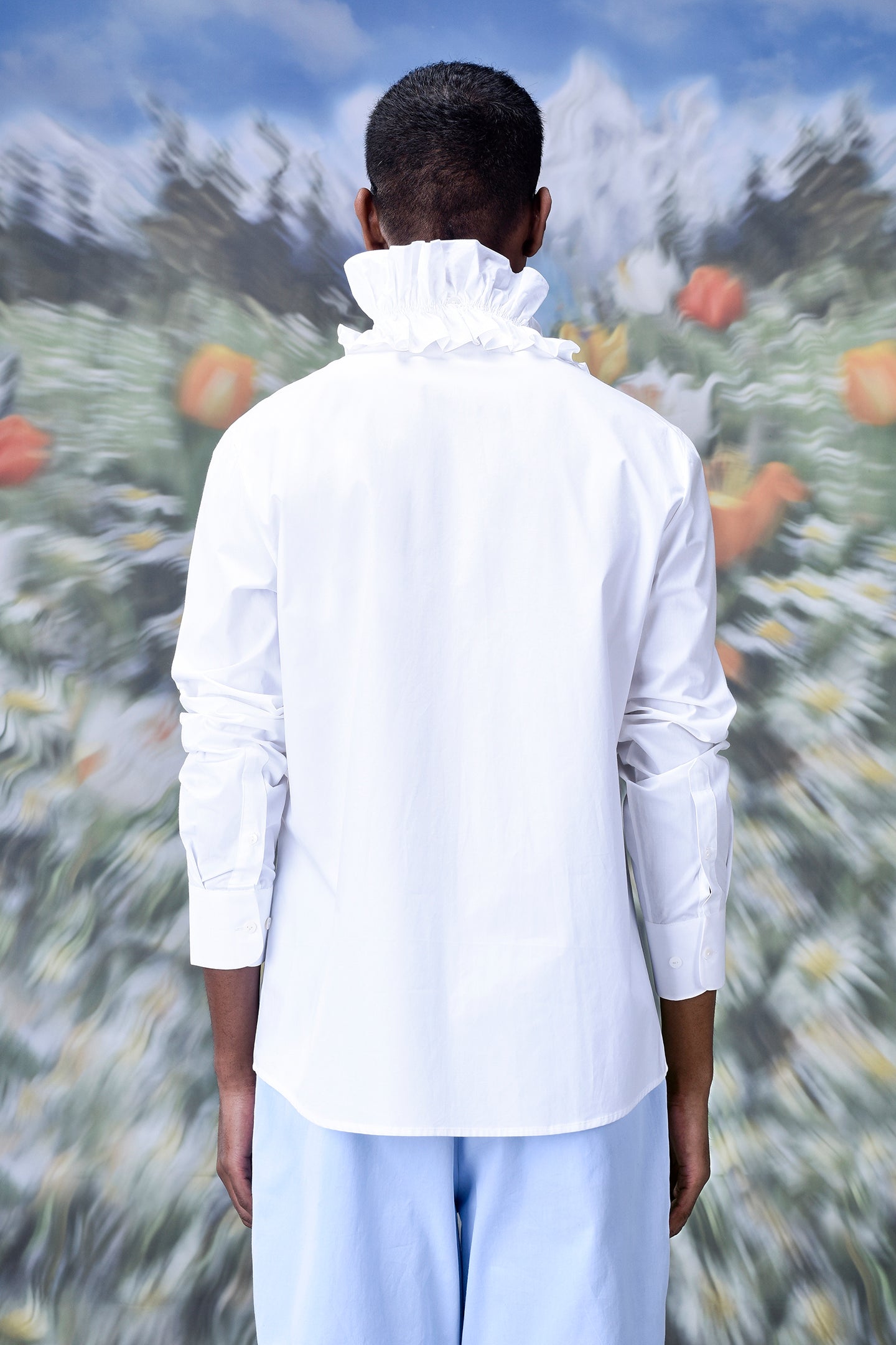 Detachable Ruffle Collar Regular Fit Shirt- White