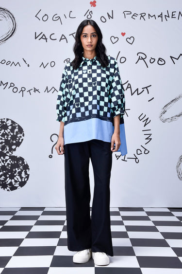 Presenting our Chess Board Free size Shirt inspired by by playful ‘fun and games’ spirits with Heart motifs and playful chess board stripes.‘Dreams’ by Genes welcomes you to a summer of exuberant escape.