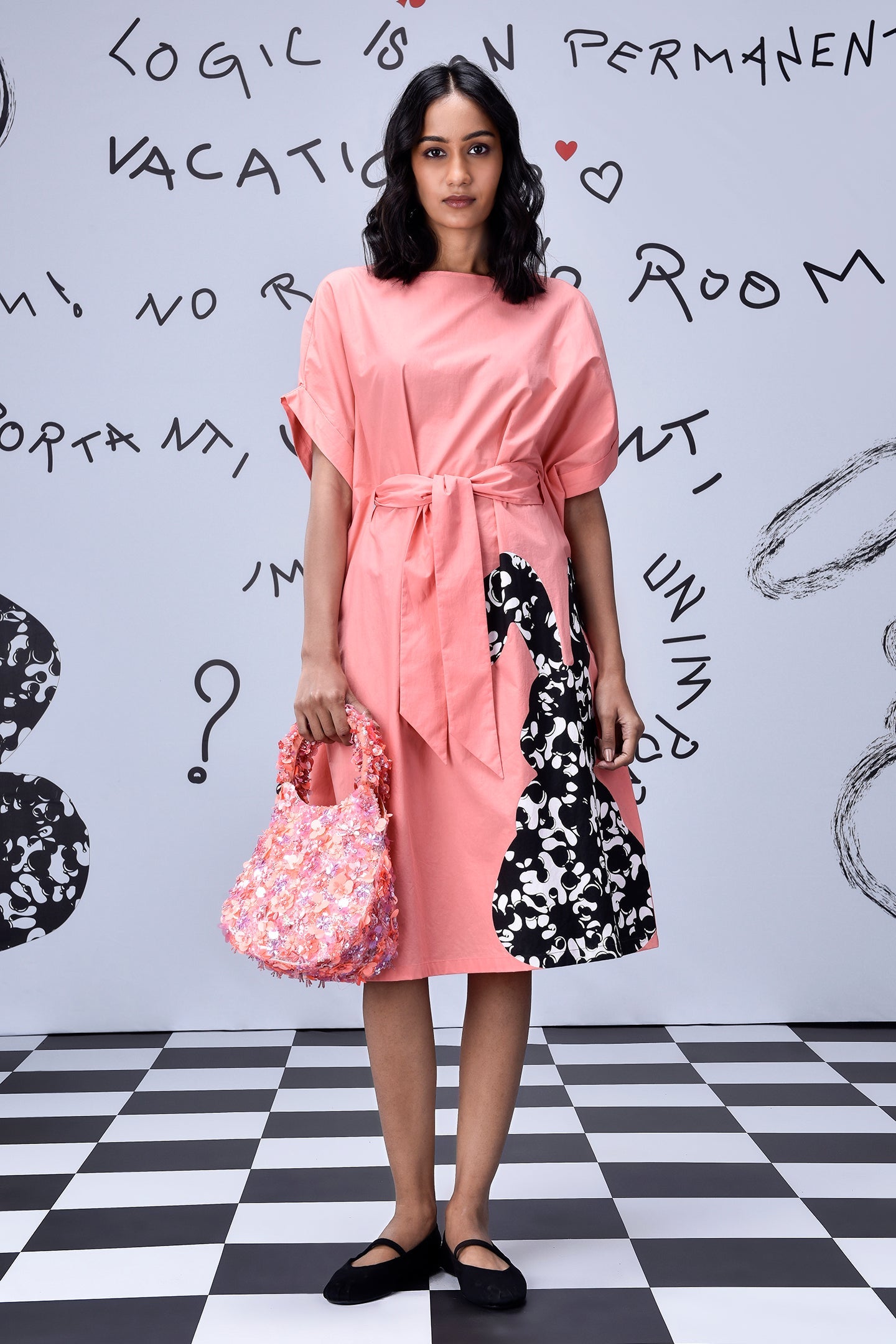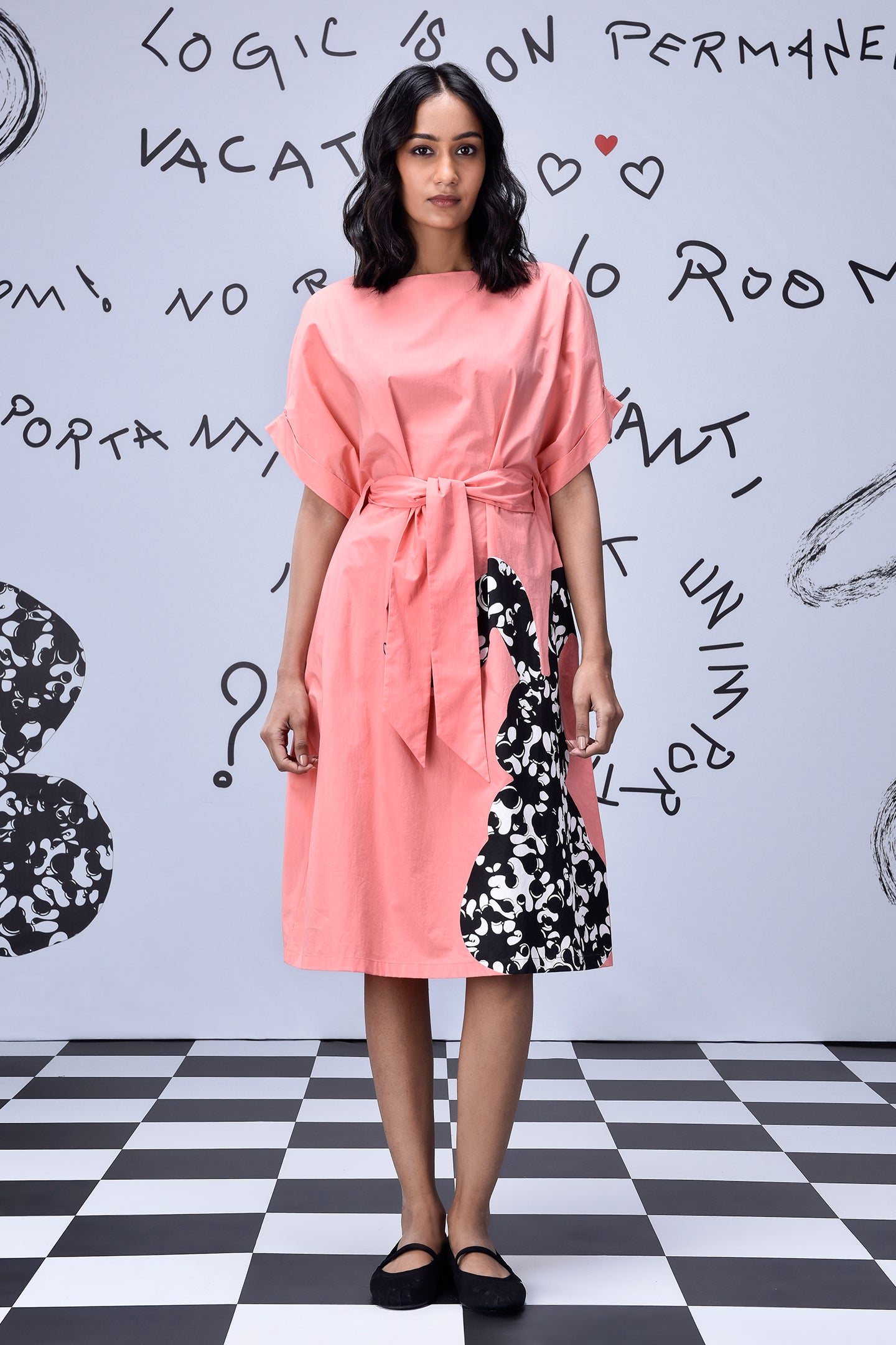 Presenting a blend of comfort and style with our, Rabbit Texture Dress in Coral Peach. A pivotal character in our SS ’25 collection - the oversized rabbit is rendered in a lively screen print.