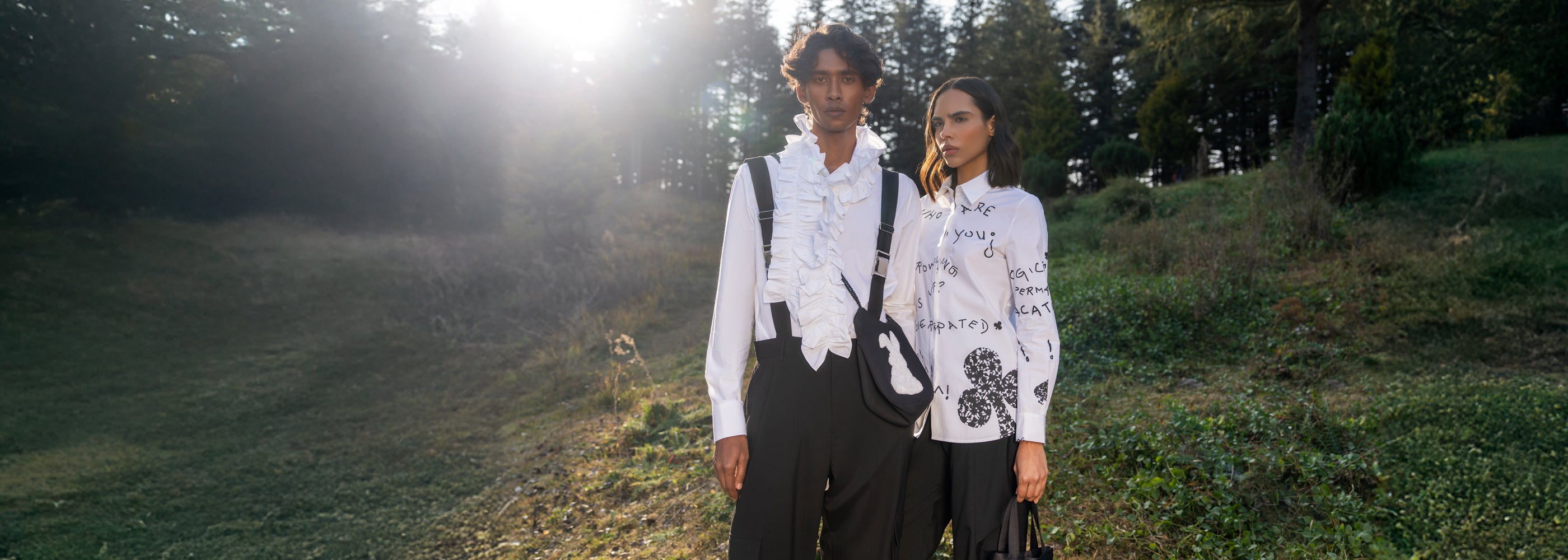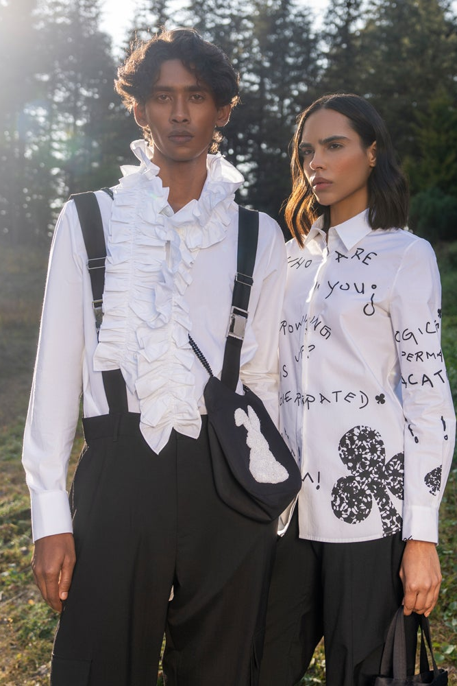 Black Poplin Shirt Dress with Cutwork Sleeves