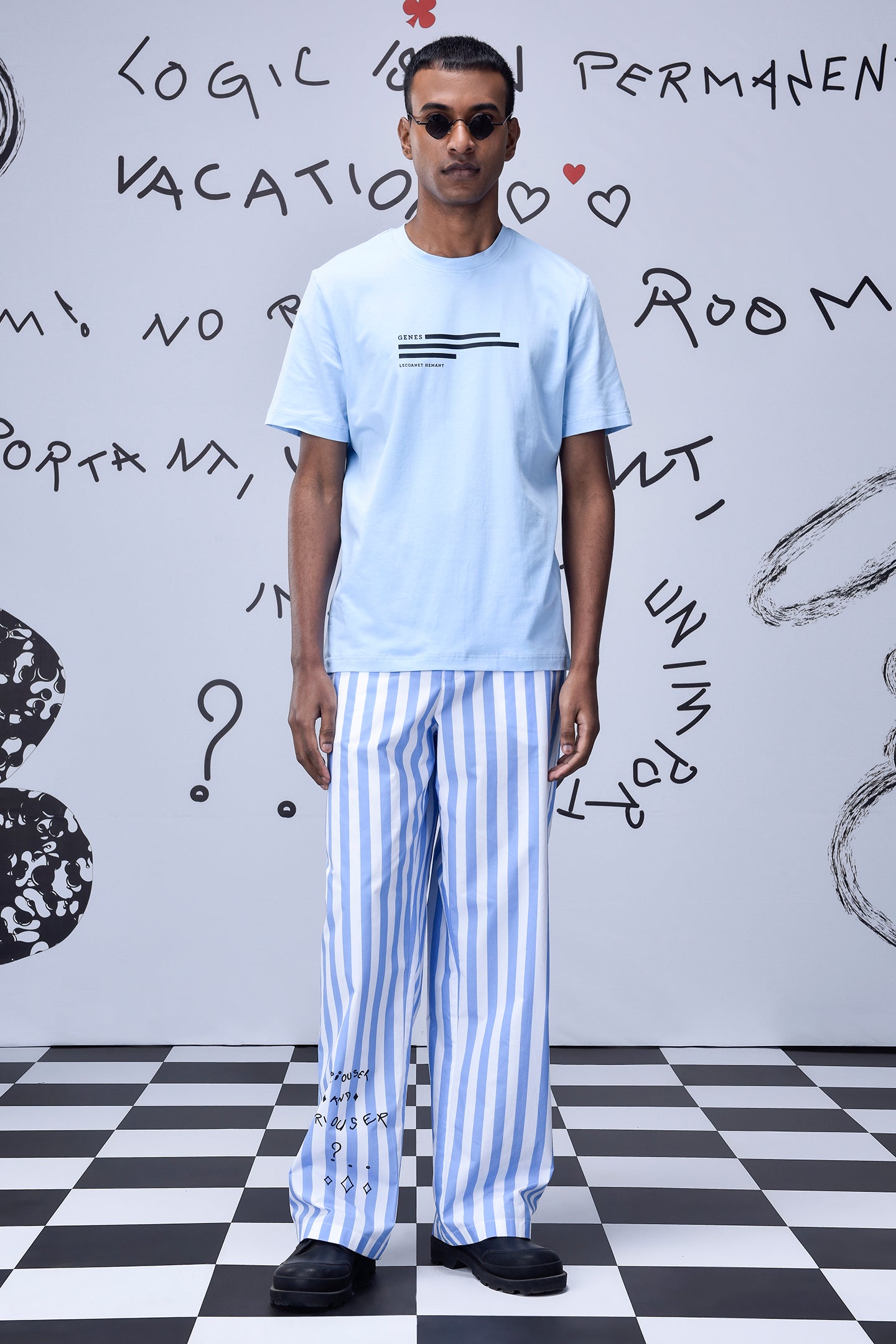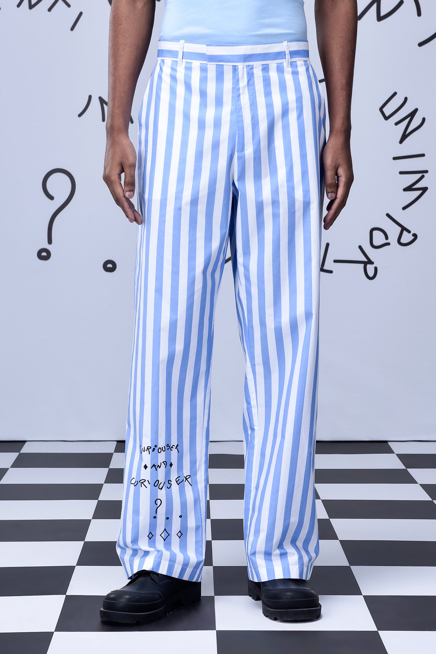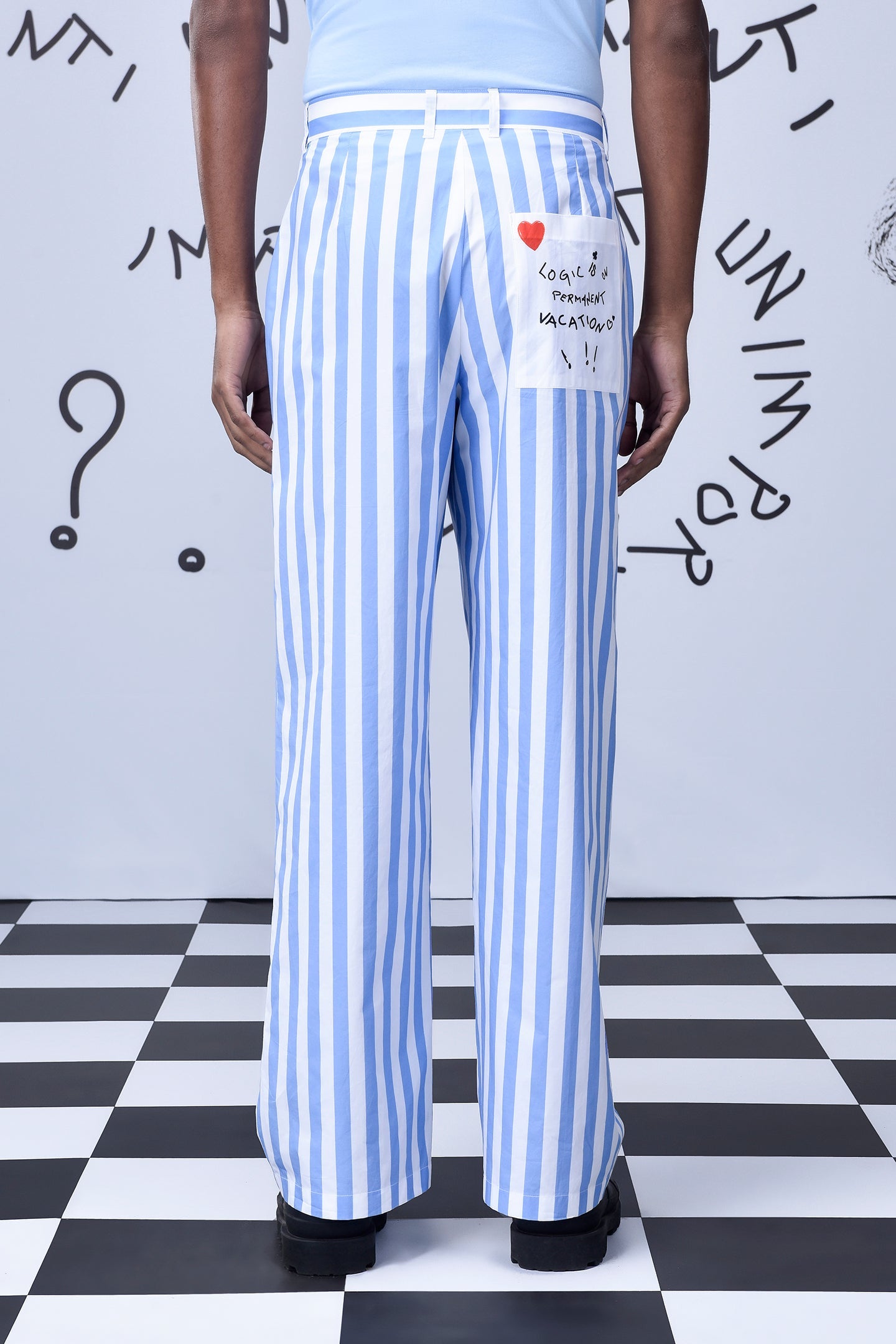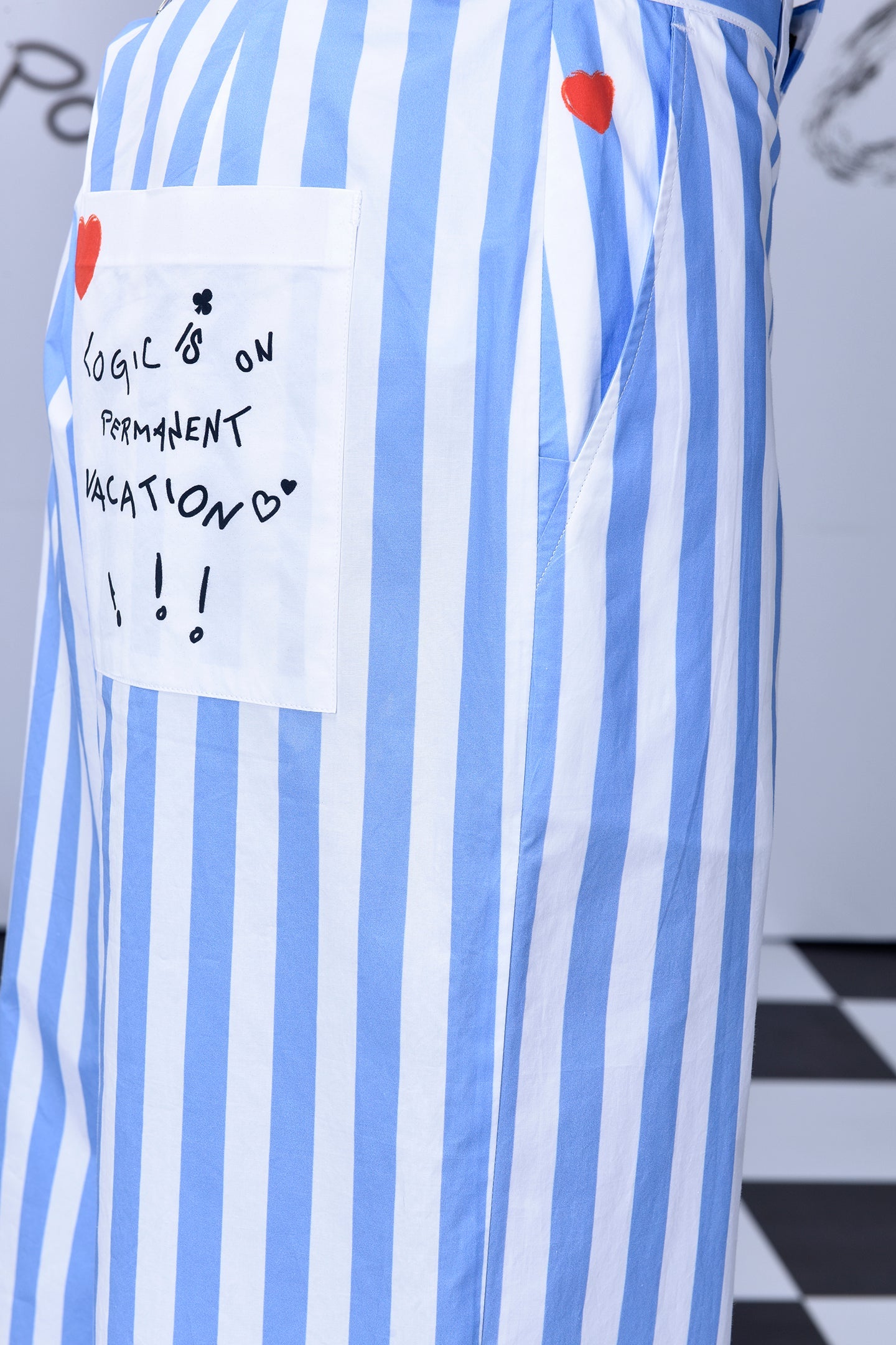 A modern twist to classic check print with our Chess Board Striped Trousers inspired by playful ‘fun and games’ spirits with Heart motifs and handwritten cheeky quotes adds an element of quirk.