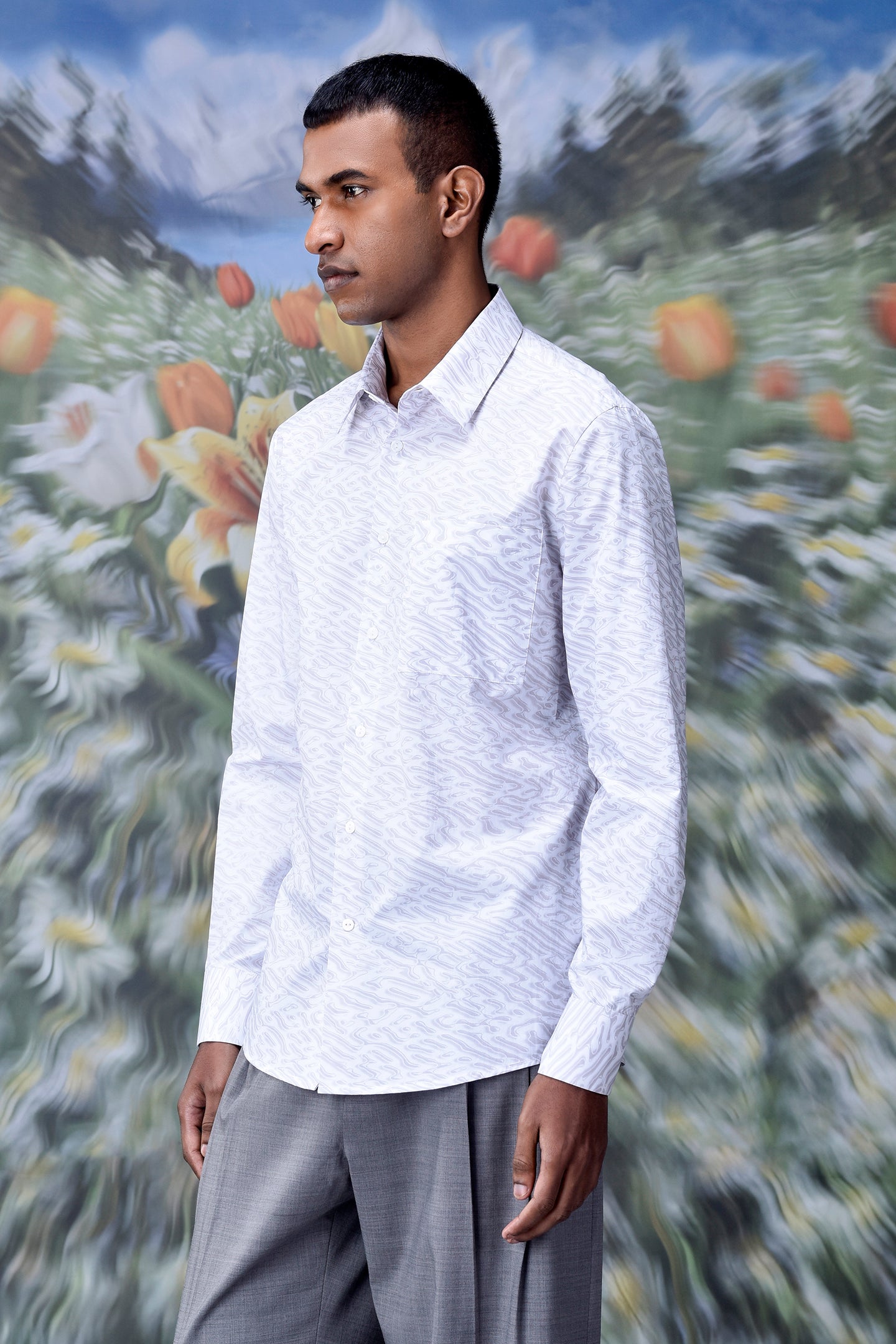 Presenting our Labyrinth Cotton Shirt in Pearl Grey inspired by the winding nature to dreams- The Labyrinth print, evokes that sentiment of surreal intrigue.