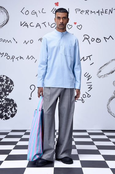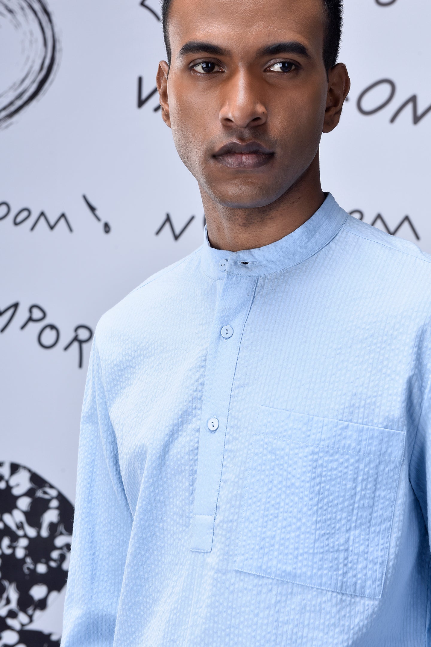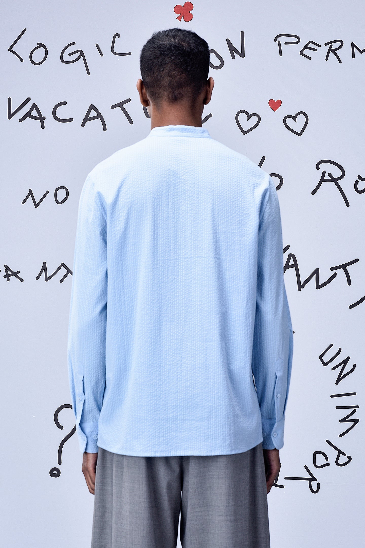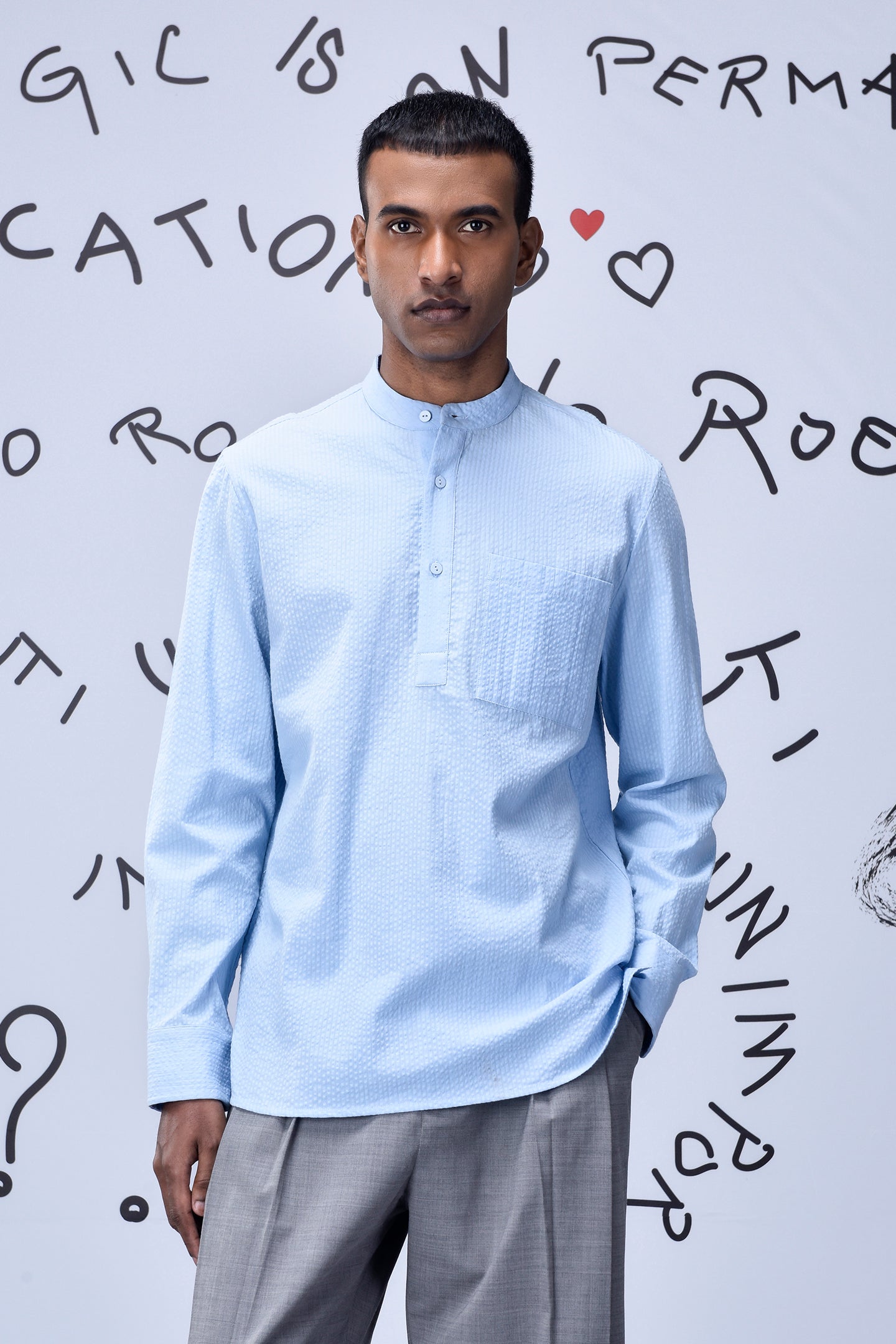Featuring our Solid Shirt in Light Blue, crafted from lightweight seersucker fabric. Signature puckered texture of the shirt creates a naturally crinkled finish, enhancing breathability and minimizing the need for ironing.