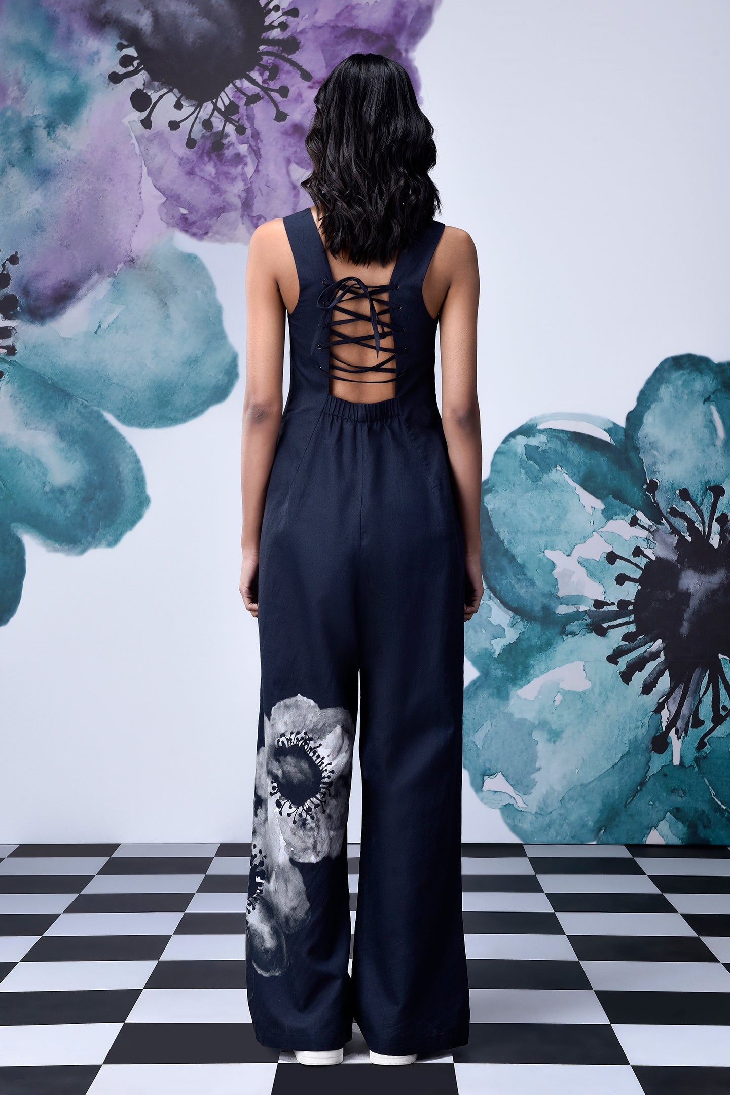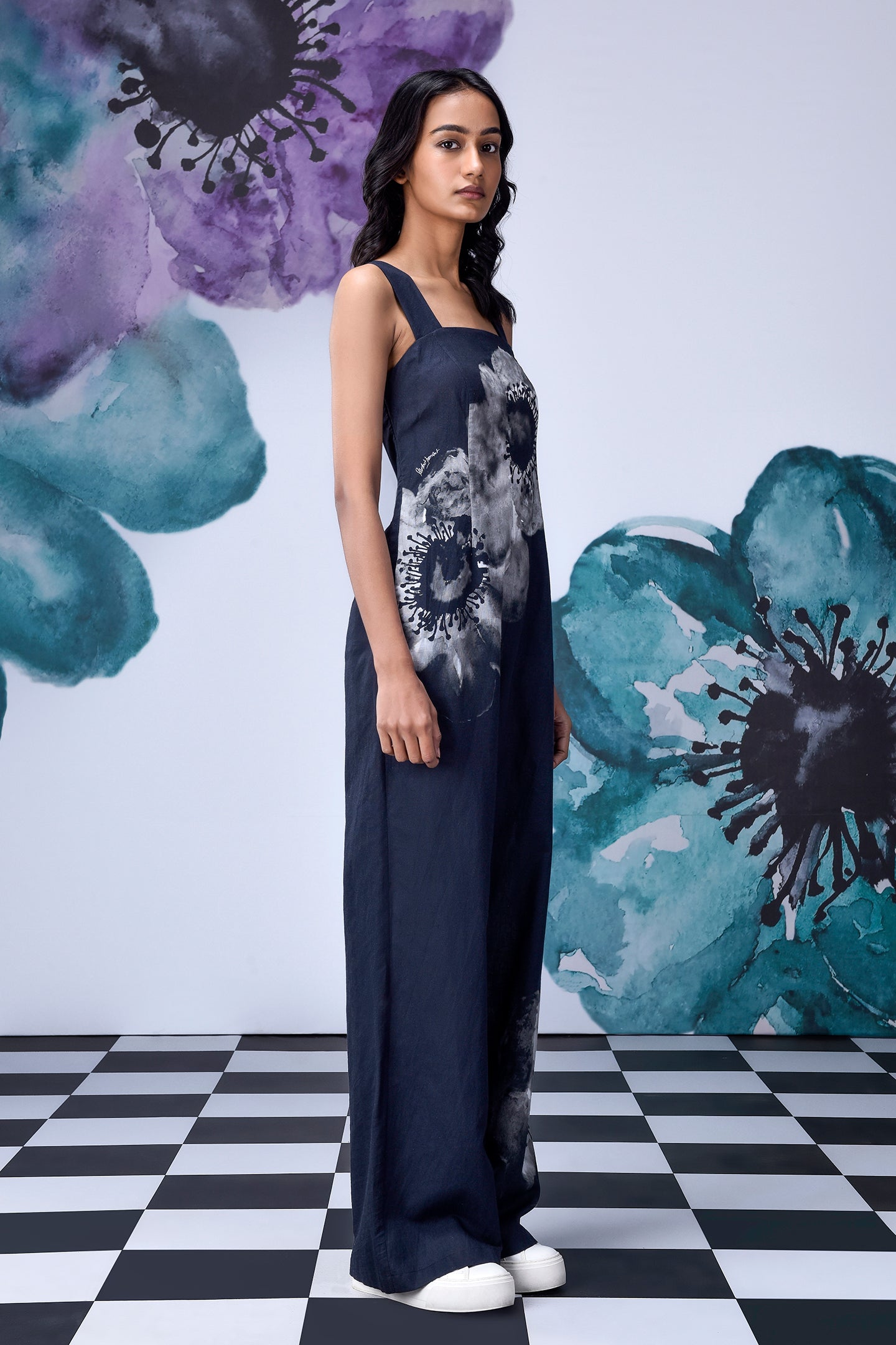 Anemone Flower Semi Fitted Dungaree- Black Grey