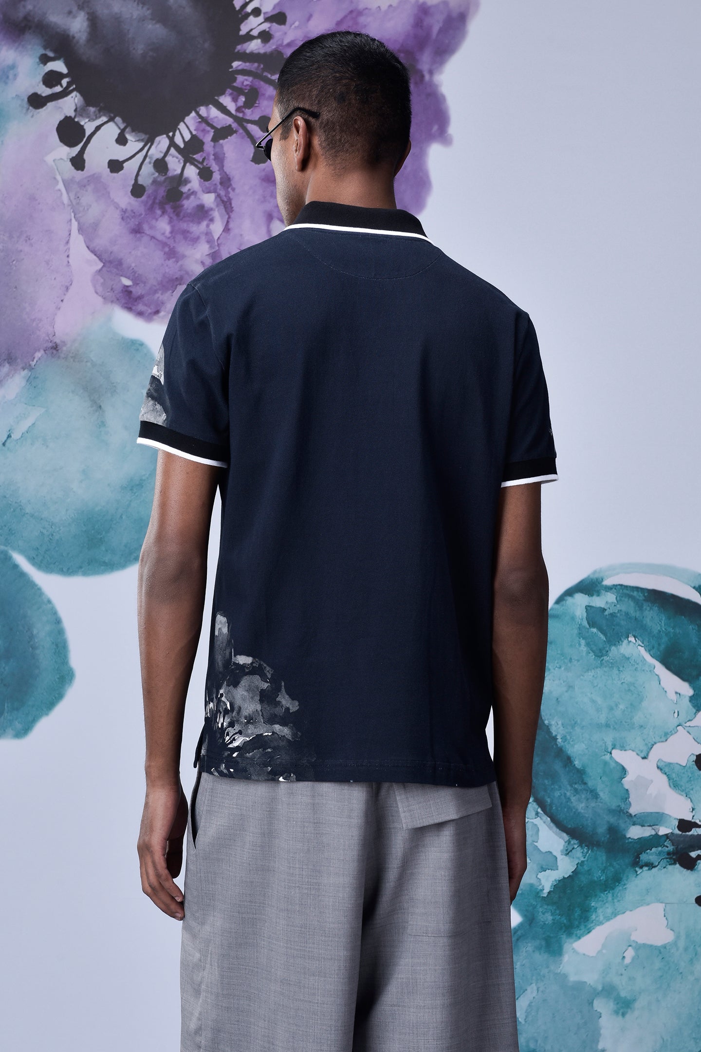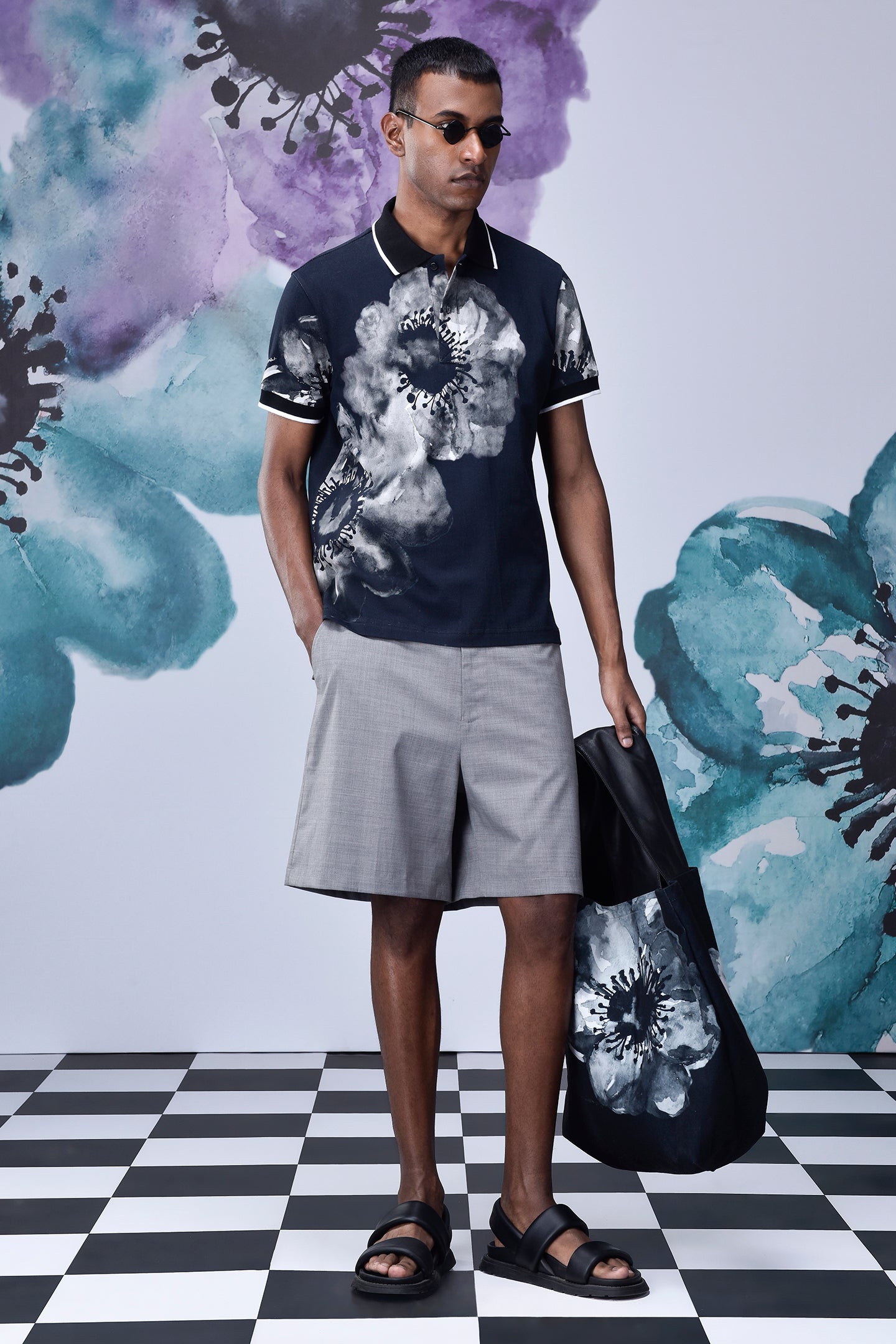 A fresh interpretation of the classic polo, our Black-Grey Cotton Piqué Polo brings a touch of artful rebellion to everyday wear. The large-scale abstract floral print creates a bold yet sophisticated statement, complemented by a structured silhouette and contrast piping for a refined finish.